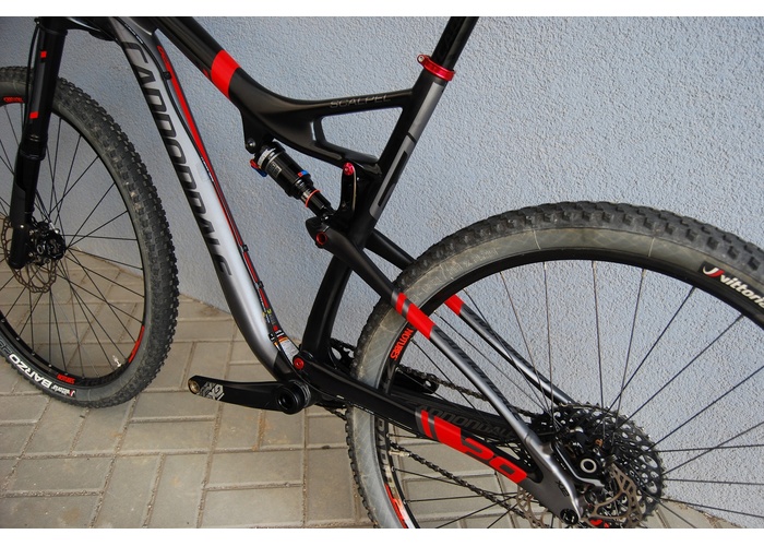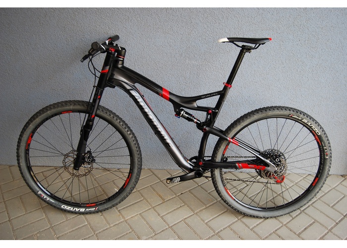 Rychlé karbonové celoodpružené kolo na 29 palcových kolech. Velikost rámu je XL, pro výšku přibližně od 184cm.