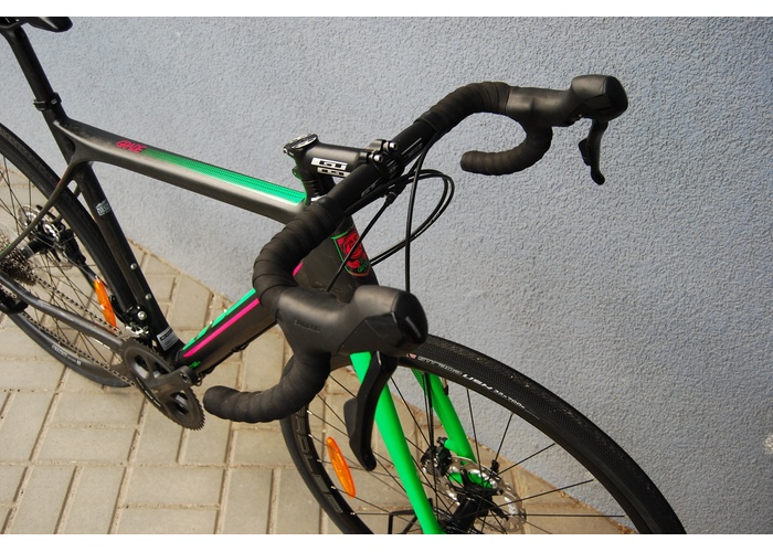 Karbonový gravel od amerického výrobce GT. Pro výšku přibližně 168 až 178cm. Kolo má najeto pouze 10km.