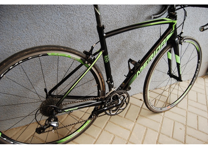 Kvalitní silniční kolo s hliníkovým rámem a karbonovou vidlicí. Pro výšku přibližně 163 až 172 cm.